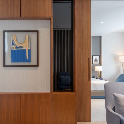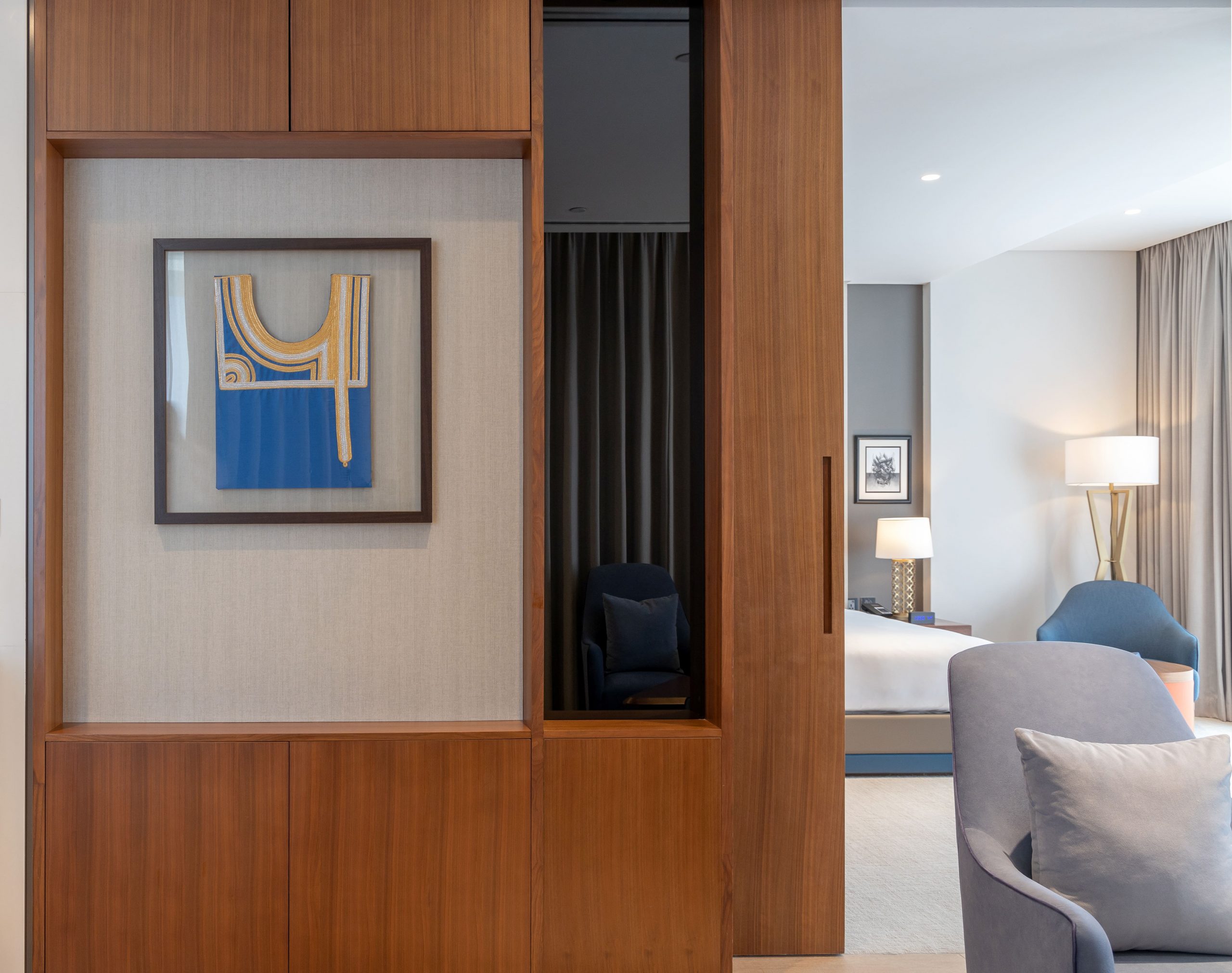 While the public area is an extension of the hotel surroundings, Guest Rooms and Suites reflect the culture of the UAE. For example, we used the traditional Talli hand embroidery to create a contemporary artwork.